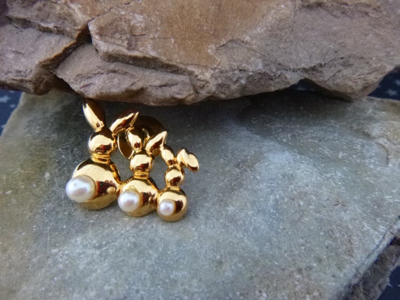 Mama Bunny with Basket of Colorful Easter Eggs Vintage Plastic Pin | Whimsical