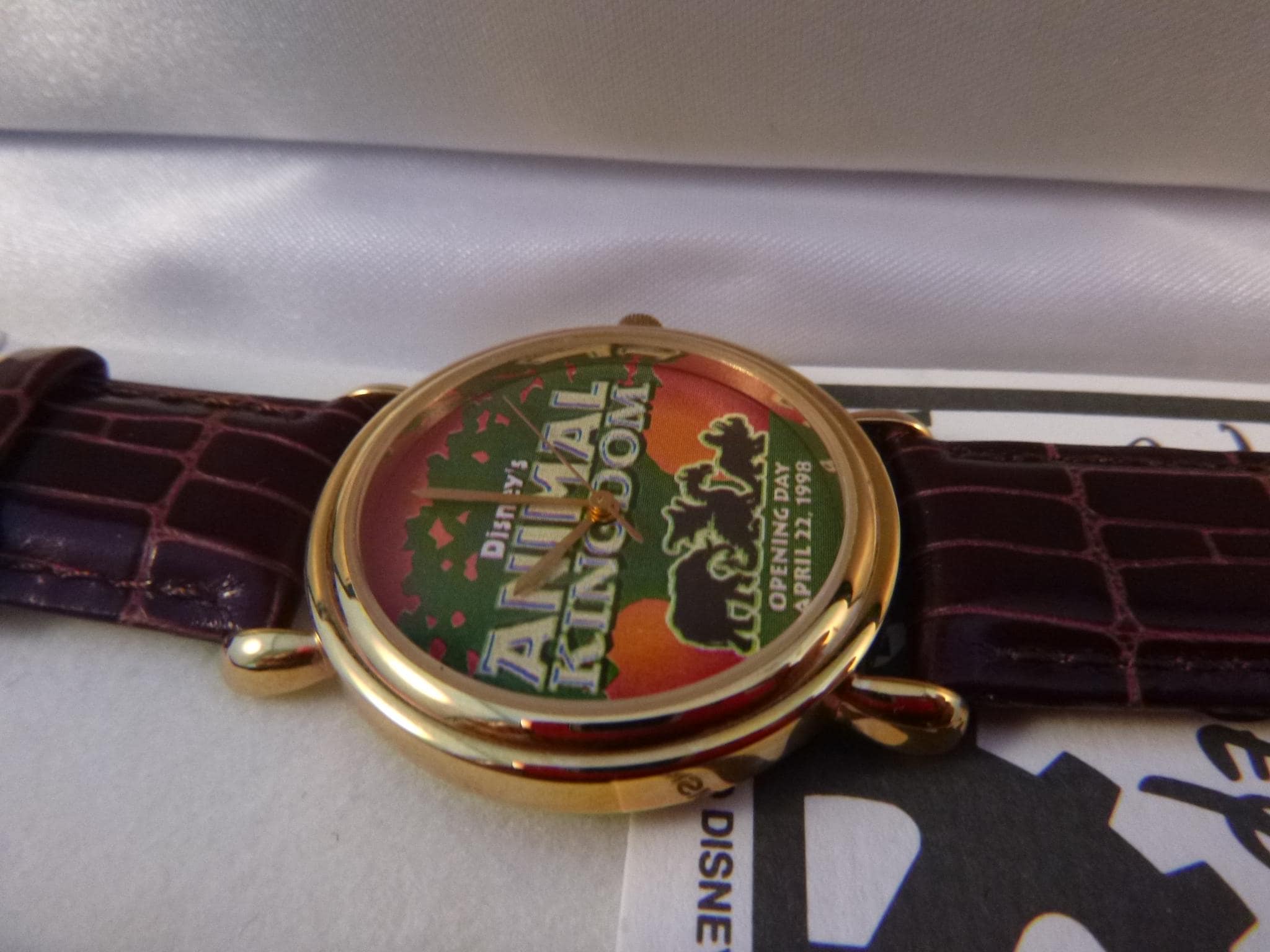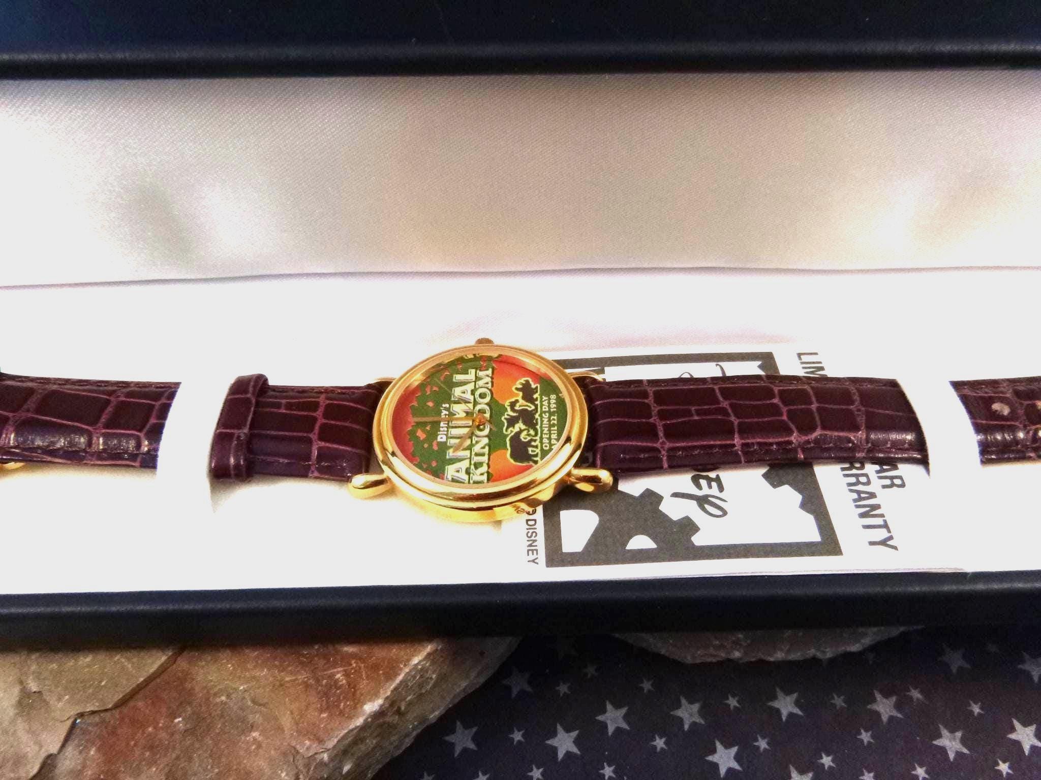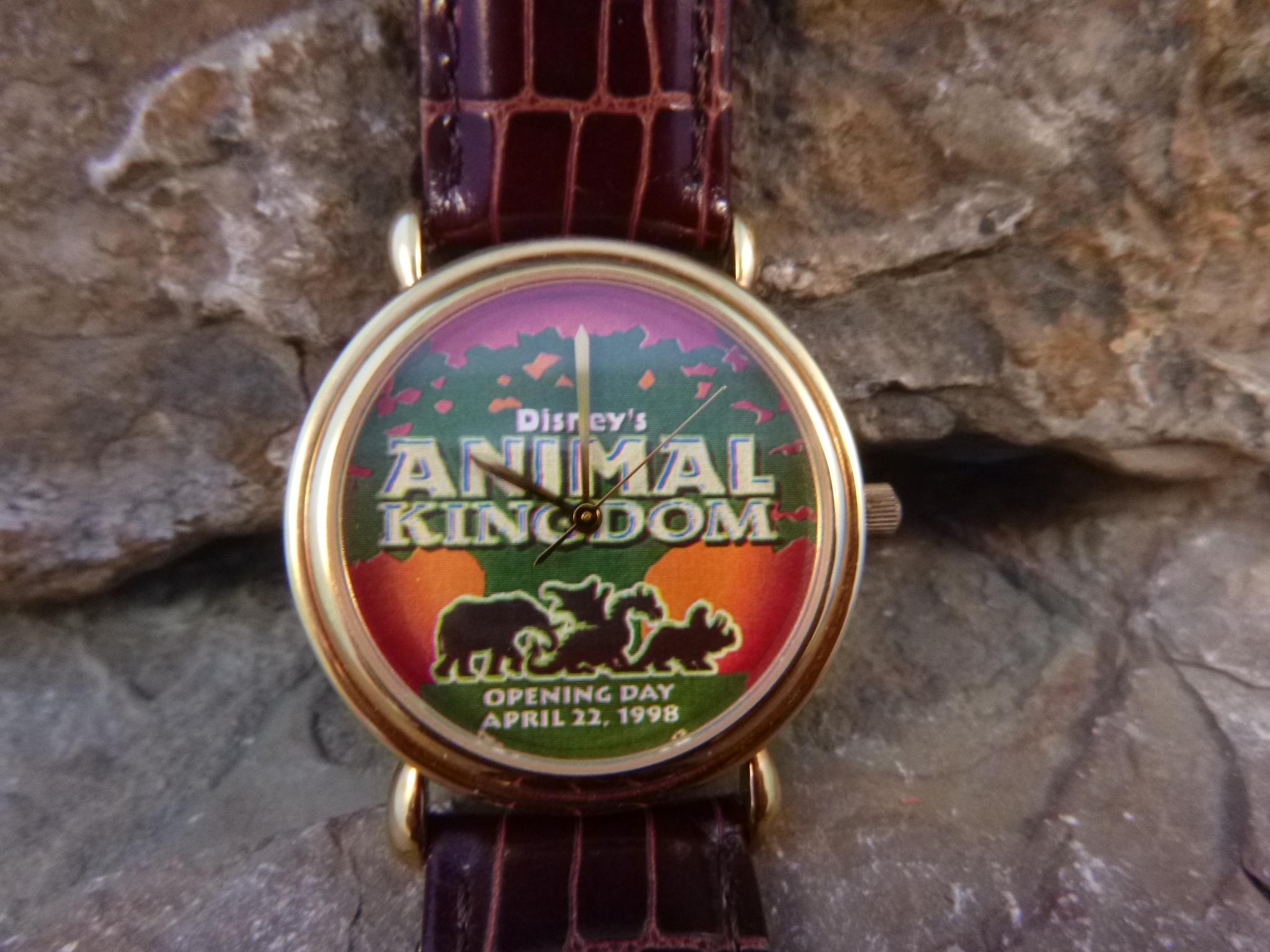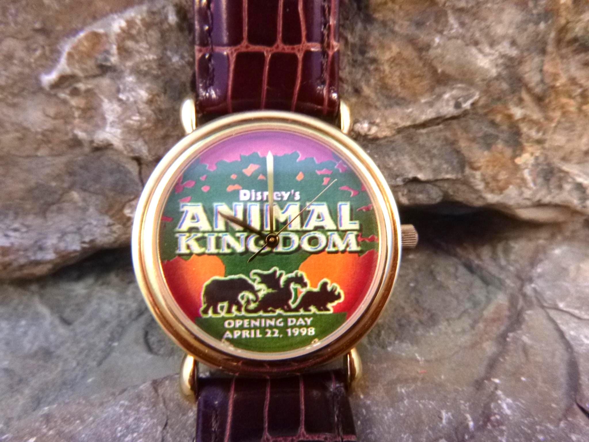 On April 22, 1998, Animal Kingdom opened at Walt Disney World with 35,000 guests allowed in to celebrate opening day. My husband and I were two of them. I purchased this opening day watch in the park that day. The park’s logo has been changed a number of times since then, but this watch has the original park logo of an elephant, a dragon and a triceratops. The limited edition number of these watches is 710.