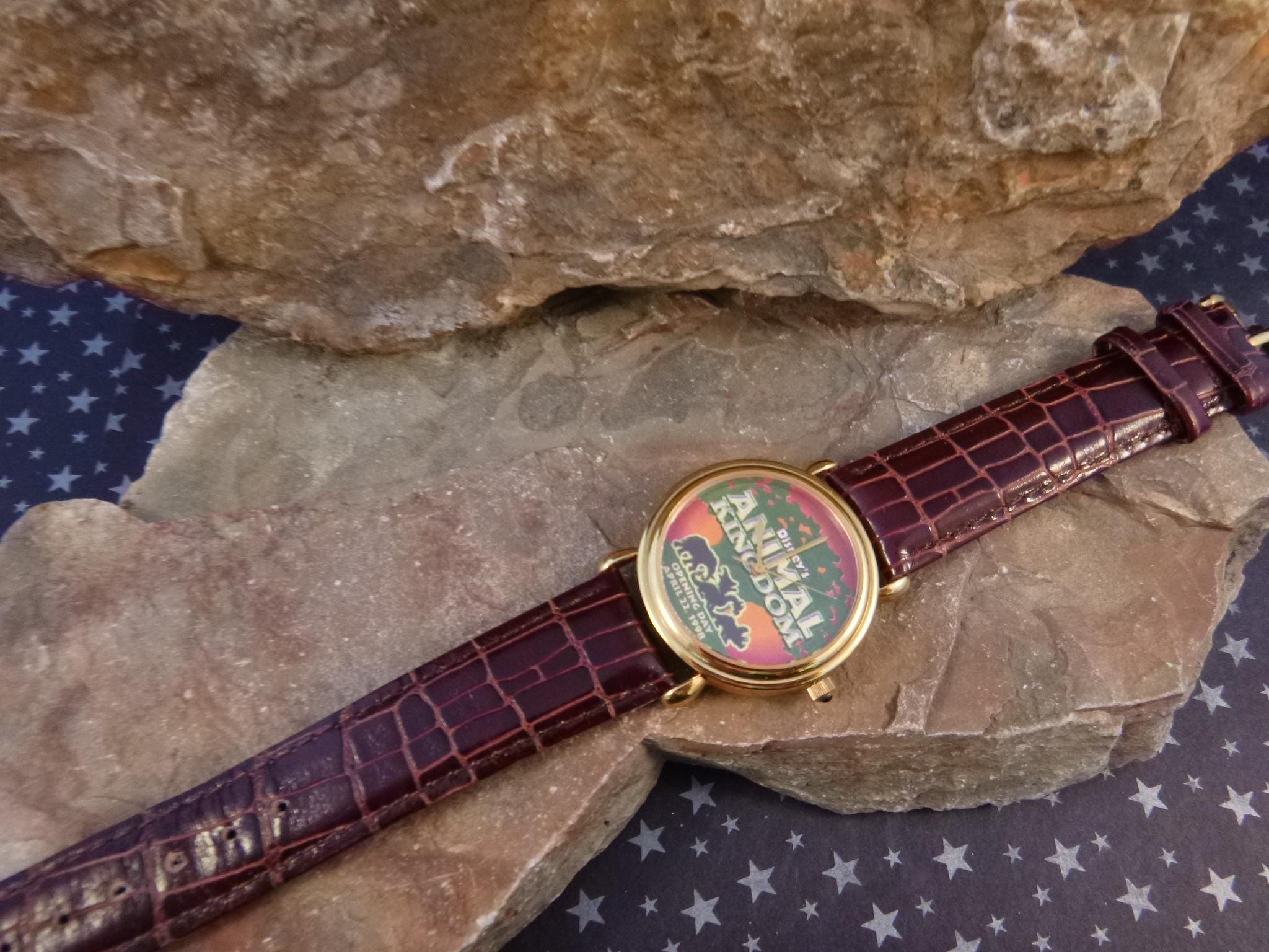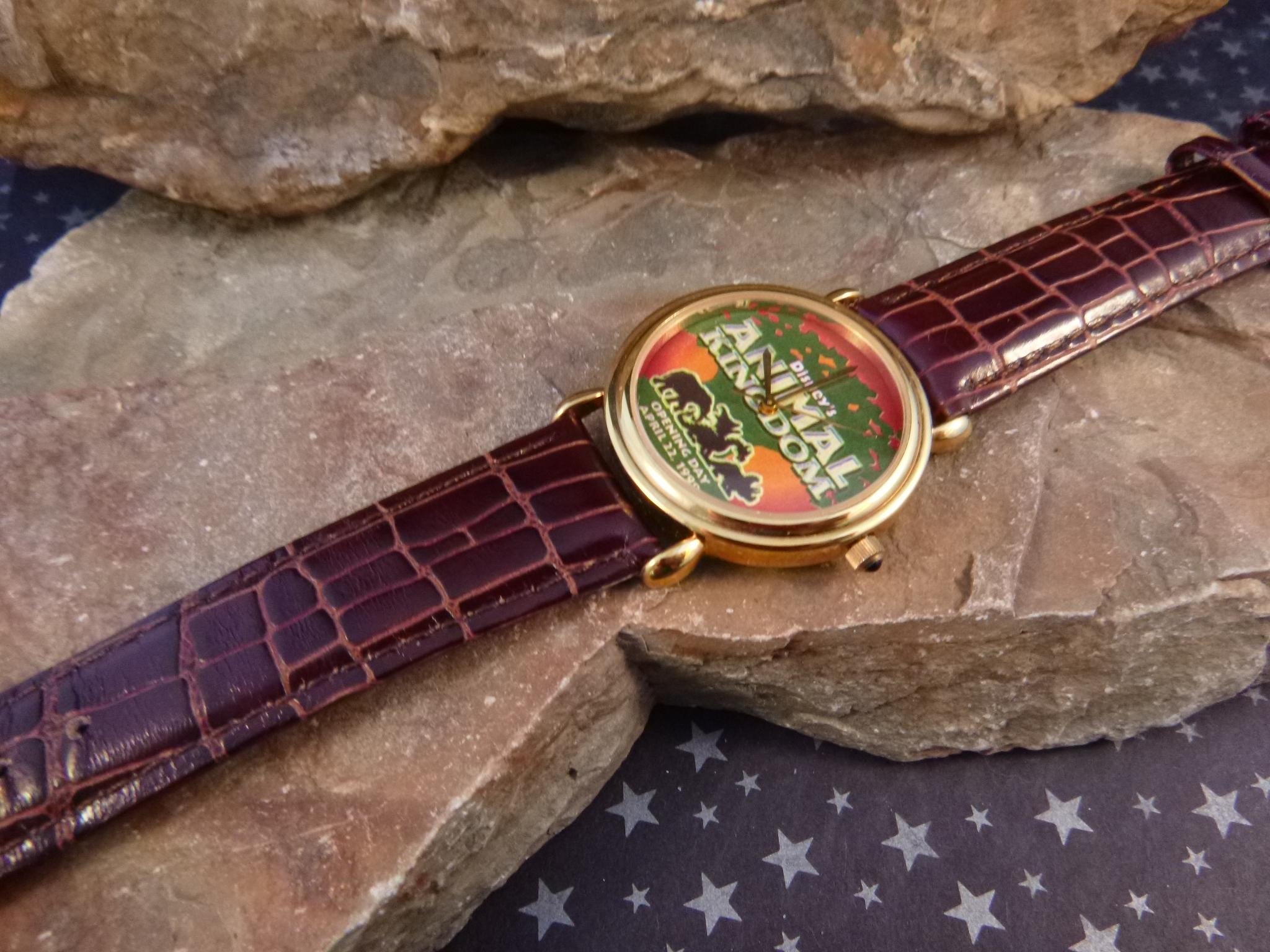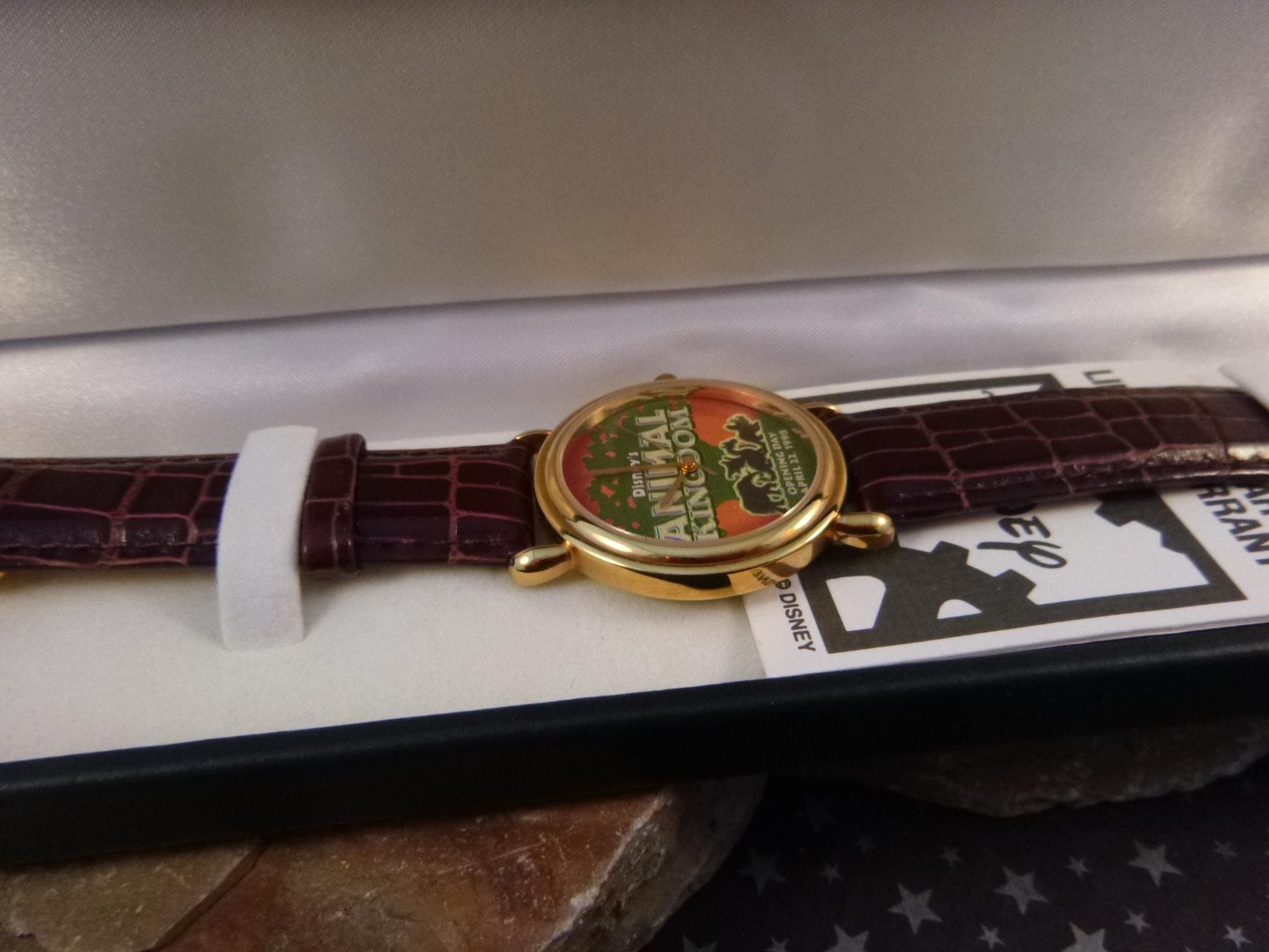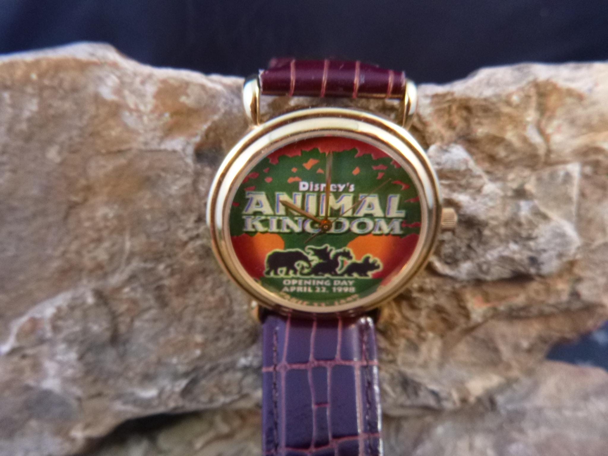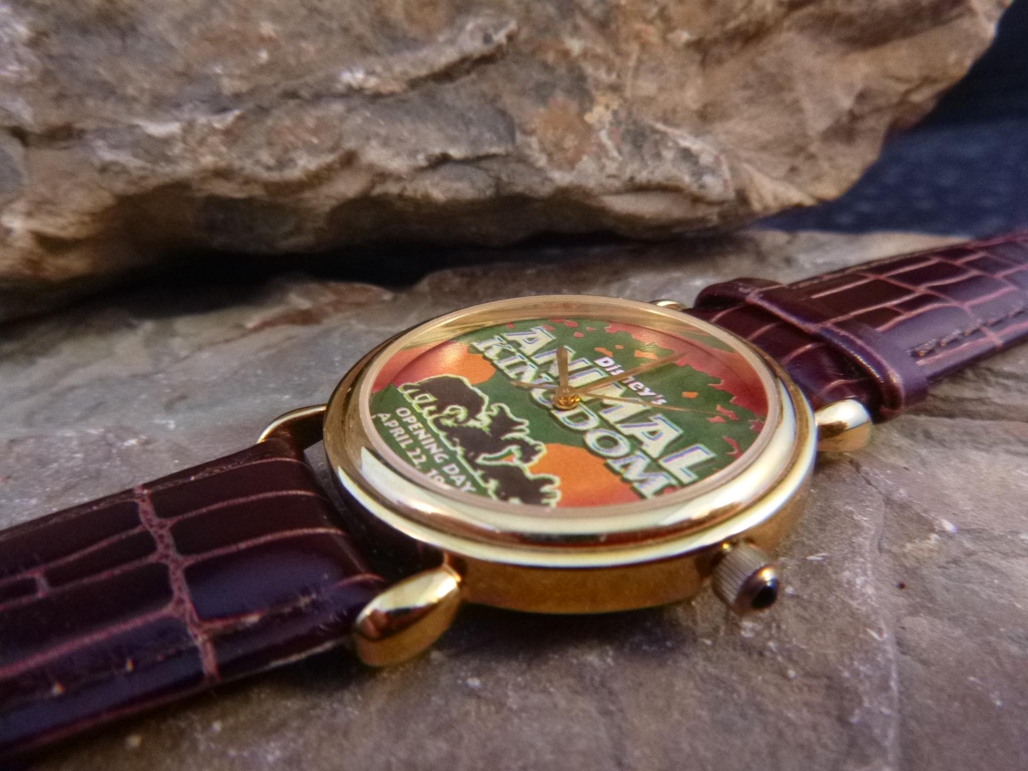 On April 22, 1998, Animal Kingdom opened at Walt Disney World with 35,000 guests allowed in to celebrate opening day. My husband and I were two of them. I purchased this opening day watch in the park that day. The park’s logo has been changed a number of times since then, but this watch has the original park logo of an elephant, a dragon and a triceratops. The limited edition number of these watches is 710.