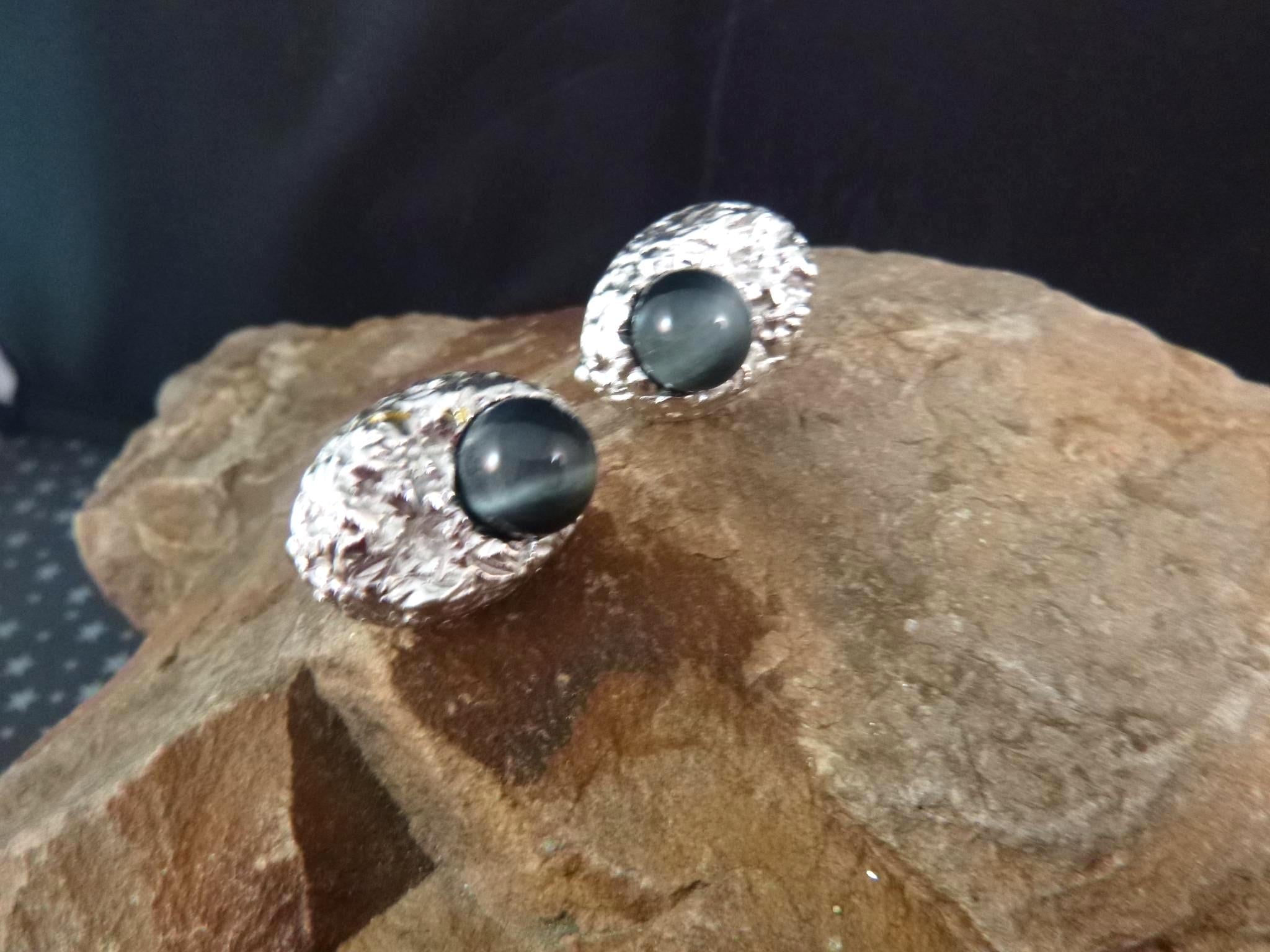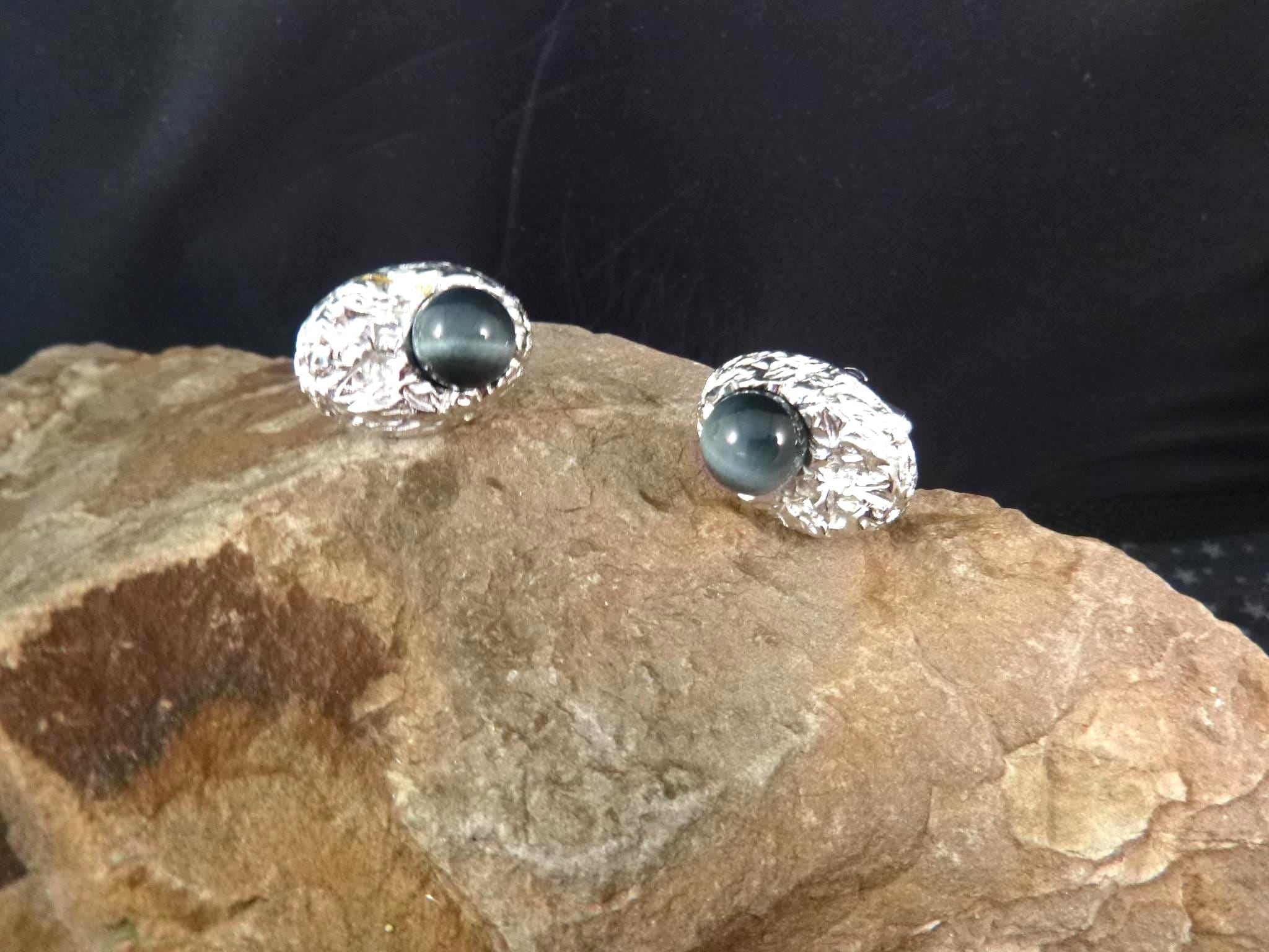 Overall, they are in very good vintage condition, with a few light scratches to the metal. Set in silver tone textured metal, they have an elegant styling that is distinctive and timeless.