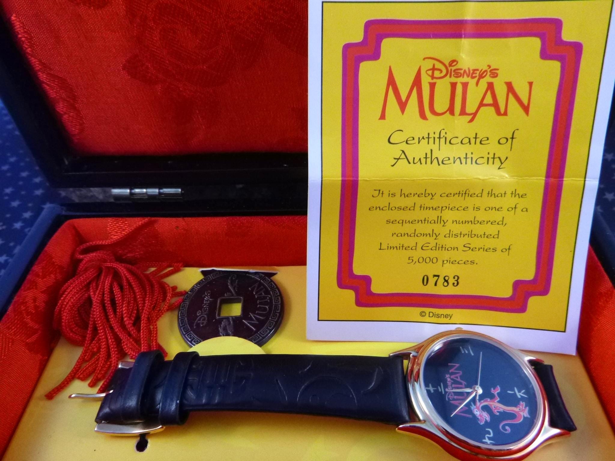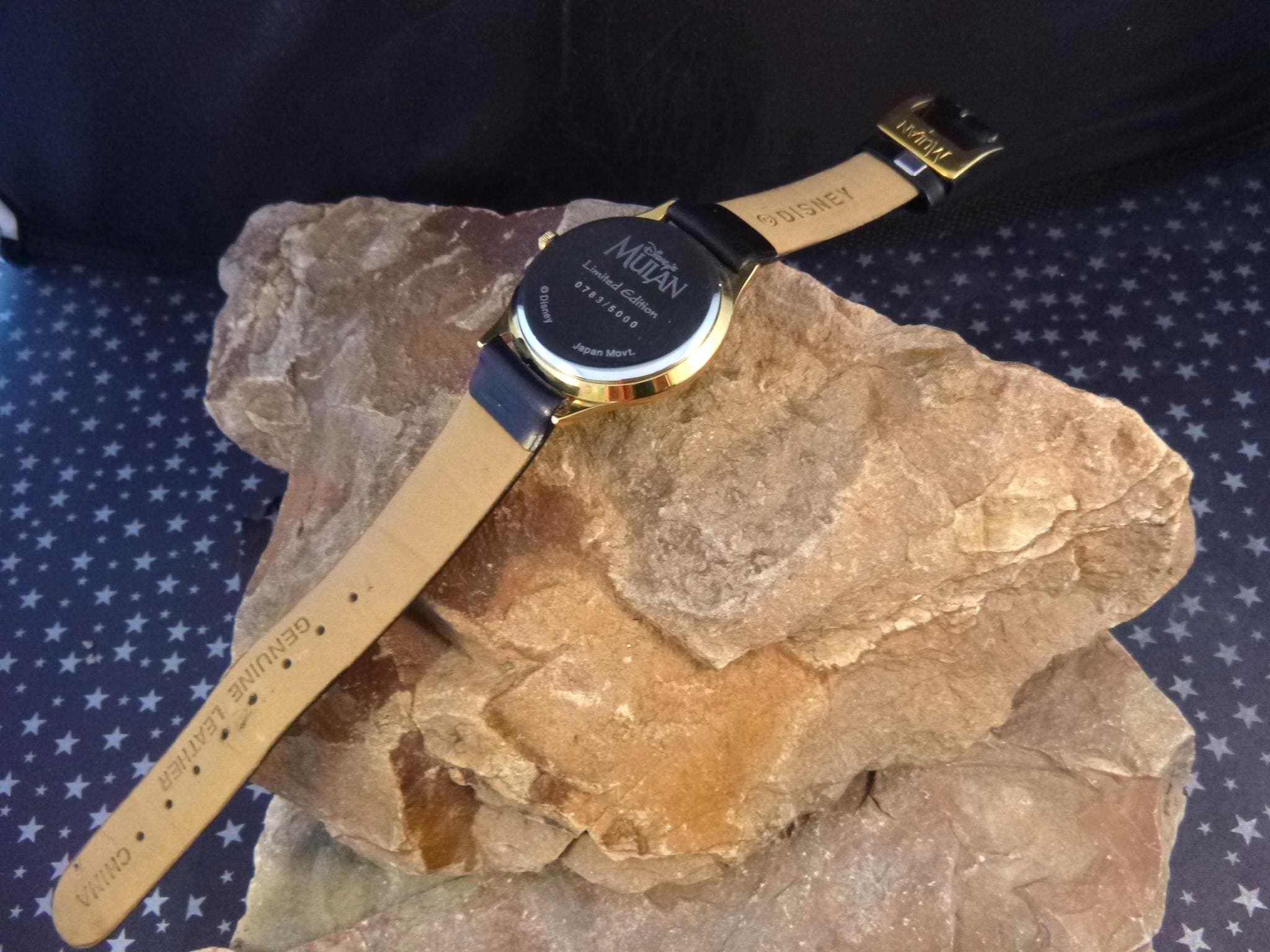 Purchased in 1998 when the Disney Mulan movie was released, this collectible, limited-edition Mushu watch was part of my personal collection from the day it was purchased, albeit it rarely worn. On the back it reads: “Limited Edition 0783 / 5000 Disney’s Mulan © Disney Japan Movt.”
