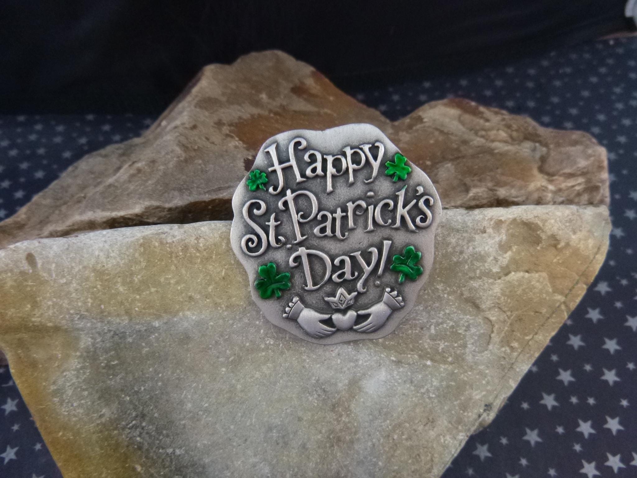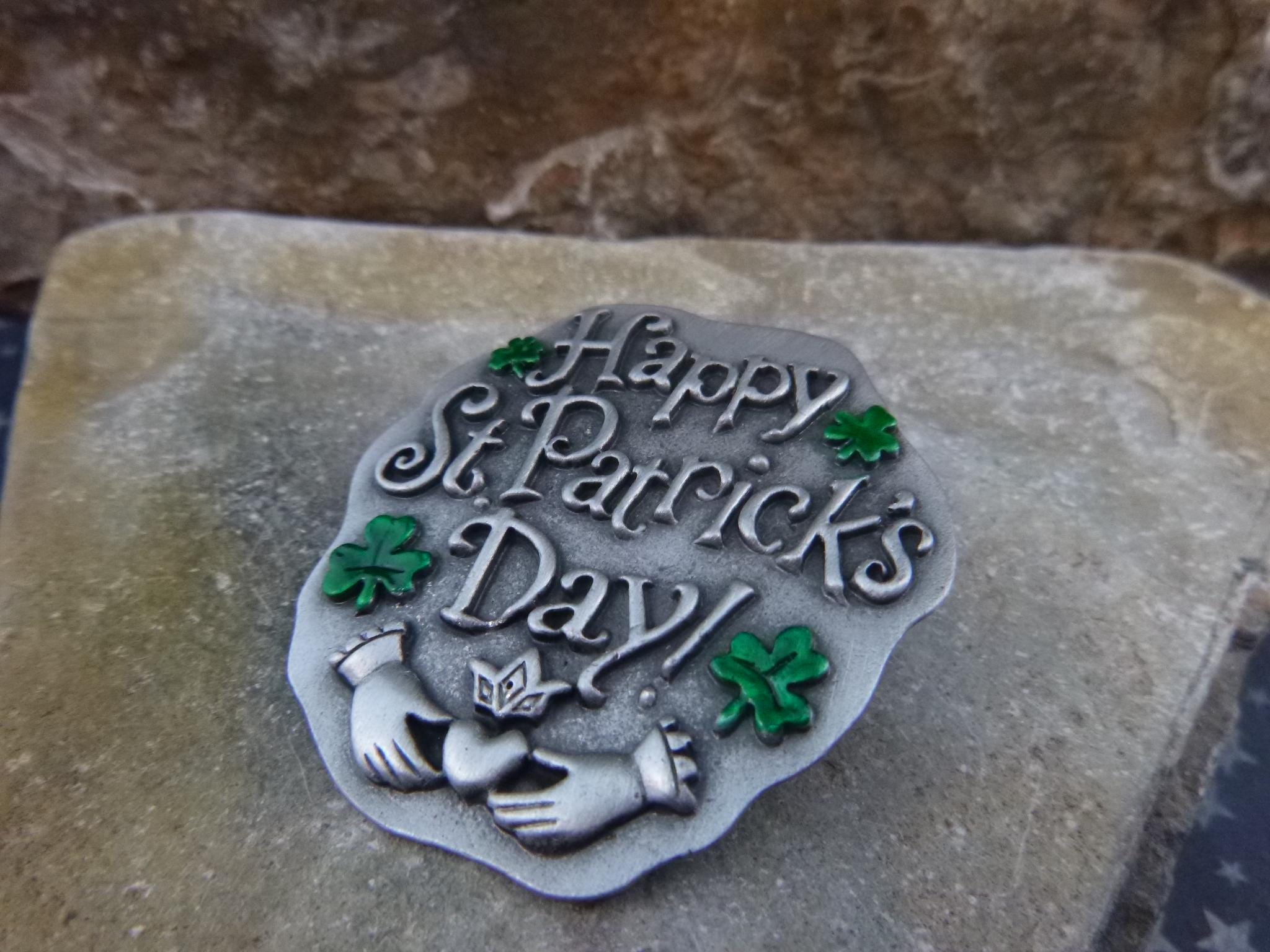 Happy St. Patrick’s Day Vintage Brooch | JJ Signed | Irish Themed Vintage Pewter Pin with Shamrocks | Timeless Classic