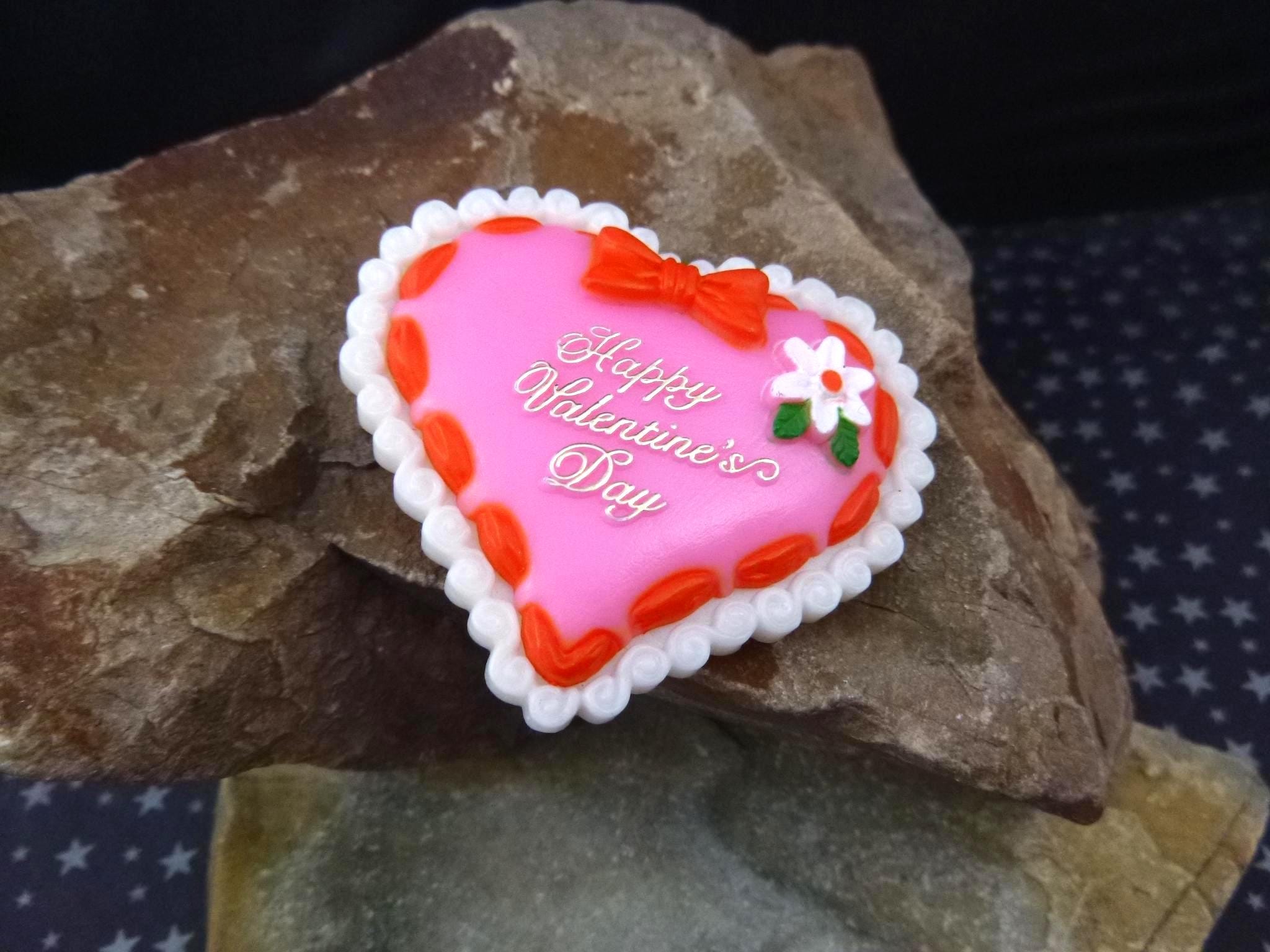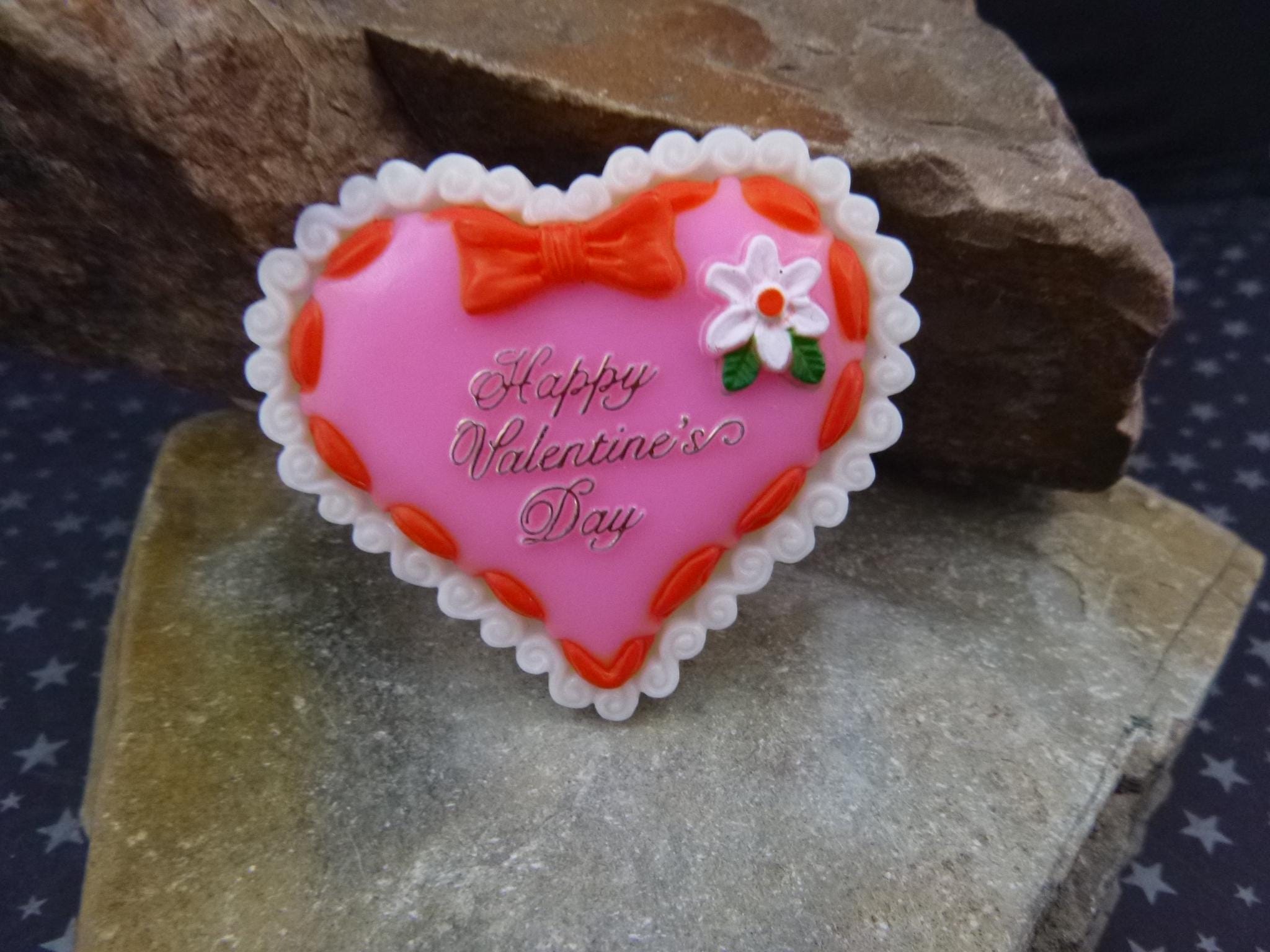 Happy Valentine's Day vintage 80s message pin. When I saw this pin, it made me think of a “happy heart” full of joy and love. It a fun message pin with a floral flair The pin is made of hard plastic with red and pink coloring and a white edge. On the back is a faint maker’s mark "© American Greets Corp MCMLXXX."