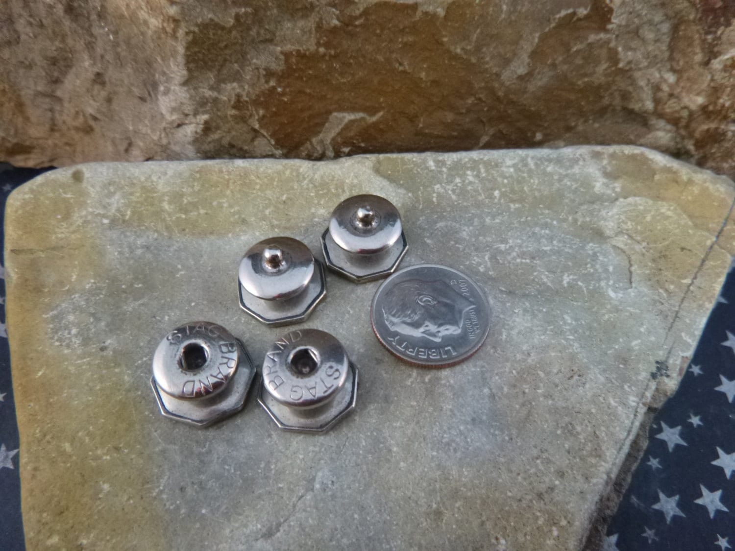 Snap button cuff links were popular in the l920s. The marker’s mark of these are on the inside of the snap mechanism and marked “Stag Brand” in block letters. It is a brand of the Hawley Folsom Company of Boston which started in l908 and closed 30 years later.